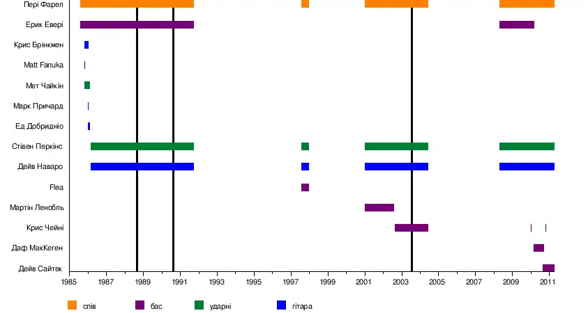 - Пері Фарел (Perry Farrell) – спів (1985–1991, 1997, 2001–2004, від 2008)