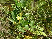 Кущ висотою 1.5–4 м, сильно розгалужений. Листки чергуються, черешчаті, темно-зелені, шкірясті, гладкі, довжиною до 5 см і шириною 2.5 см, кінцевий лист найбільший. Квітів жовті й ароматні. Цвіте з грудня по червень. Плоди — ягоди[1].
