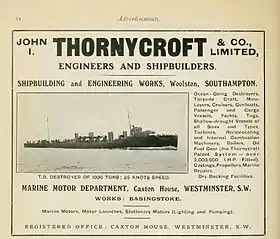Реклама J.I. Thornycroft & Co. у довіднику Brassey's Naval Annual за 1915 рік.