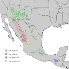 Країни зростання: Мексика (Чіуауа, Коауїла, Дуранго, Ідальго, Оахака, Пуебла, Сонора, Веракрус, Сакатекас); США (Аризона, Нью-Мексико, Техас). Росте на луках, чагарниках у ялівцевих лісових і відкритих соснових лісах, з, наприклад Opuntia, Agave, Cactaceae, Yucca, Solanum papita у відкритих місцях проживання; з Pinus cembroides, Pinus leiophylla, Pinus teocote, Juniperus flaccida, Quercus у чагарниках, рідколіссях і лісах; у напівзасушливих горах і більш посушливій міжгірській зоні на сухих, кам'янистих схилах або в долинах і плато з піщаними ґрунтами, на вапняку, вулканічних покладах або інших типах порід. Висотний діапазон для цього виду від 750 м до 2750 м над рівнем моря.