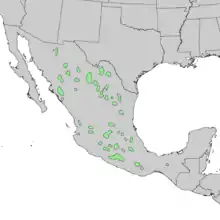 Країни зростання: Мексика (Чіуауа, Коауїла, Дуранго, Гуанахуато, Герреро, Ідальго, Халіско, Мексика Держава, Мічоакан, Морелос, Нуево-Леон, Оахака, Пуебла, Керетаро, Сан-Луїс-Потосі, Сонора, Тамауліпас, Тлакскала, Сакатекас); США (Техас). Зустрічається в гірському ялівцевому рідколіссі, сосново-дубовому лісі й рідколіссі, дубовому рідколіссі, з Pinus cembroides, Pinus, Juniperus deppeana, Juniperus saltillensis, Quercus, Fraxinus, Arbutus, мімозні бобові, Yucca і т. д., на вапнякових або інших породах, включаючи кременисті (гранітні) породи. Висотний діапазон становить від 800 м до 2600 м над рівнем моря.