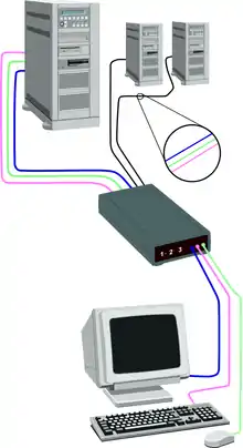 KVM-перемика́ч (скорочення від англ. keyboard video mouse — клавіатура, відео, миша) — прилад, призначений для комутації одного комплекту приладів вводу-виводу між кількома комп'ютерами[1].
