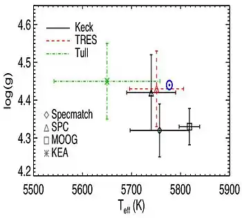 Отримано методом спектроскопії високої роздільної здатності з використанням SpecMatch:[46]