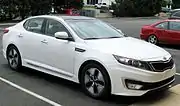 2011 рік ознаменувався виведенням на ринок Kia Optima Hybrid, гібридного автомобіля, який може працювати як в електрорежимі, так і в в комбінованому газово-електричному, причому на будь-якій швидкості, що дозволило досягти вагомою економії палива і істотного зниження шкідливих викидів в атмосферу. Європейський Optima Hybrid комплектується бензиновим двигуном 2.0 літра замість 2,4 літрового, який застосовується в моделі для ринку Північної Америки.