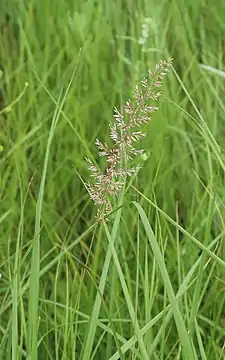 Багаторічна трав'яниста рослина росте у вільних скупченнях або пучках. Кореневище витягнуте. Стебла висхідні, 80–100 см завдовжки. Листові піхви голі. Листові пластини плоскі або згорнуті, 20–30 см × 0.75 мм, середньо-зелені; поверхня гладка. Суцвіття — лінійна перервана вільна волоть до 6–9 см завдовжки й 1–1.5 см ушир. Колоскові луски стійкі, подібні, нижня — 0.7–0.8 довжини верхньої колоскової луски, верхня ж завдовжки з родючу лему. Родюча лема довгаста; 3.5–4.5 мм завдовжки; мембранна; блискуча. Верхня квіткова луска завдовжки з лему. Пиляків 3[1].