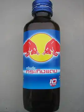 Тайський продукт відрізняється від бренду Red Bull, розробленого австрійським підприємцем Дітріхом Матешицем[6]. Матешиць був директором з міжнародного маркетингу німецької компанії Blendax, що займається зубною пастою, коли він відвідав Таїланд в 1982 році і виявив, що Krating Daeng допоміг йому впоратися з «джет-лагом»[7]. Він працював у партнерстві з T. C. Pharmaceuticals Чалео над адаптацією формули і складу до західних смаків[8]. Red Bull був запущений в 1987 році. Ці дві компанії часто помилково плутають один з одним, але вони є окремими організаціями, орієнтованими на різні цільові ринки, що працюють у співпраці один з одним. Сьогодні компанія Red Bull GmbH на 51 % контролюється сім'єю Йювідья, яка володіє правами на торгову марку цього напою в Європі і США[2].