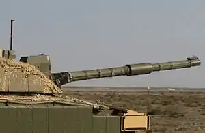 ![]() Гармата танка Challenger 2 Королівських шотландських гвардійських драгунів, Басра, Ірак, листопад 2008 | |