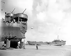 Великі танко-десантні кораблі LST-983, з LST-601 на задньому фоні, здійснюють спуск на воду бойових машин морської піхоти США LVTP-5