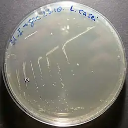 ![]() Lacticaseibacillus casei у чашці Петрі | ||||||||||||
