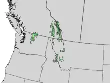 Країни поширення: Канада (пд.-зх. Альберта, пд.-сх. Британська Колумбія); США (пн. Айдахо, зх. Монтана, пн. Вашингтон). Трапляється на або поблизу лінії дерев, на висоті від 1520 м і 2440 м (макс. 3020 м) над рівнем моря. Росте зазвичай на дрібно-кам'янистих гірських ґрунтах, але іноді на більш глибоких, добре дренованих ґрунтах, якщо немає конкурентних видів. Клімат холодний, з коротким прохолодним літом і тривалими, сніжними зимами. Може рости в чистих деревостоях або в суміші з, наприклад, Abies lasiocarpa, Pinus albicaulis, Pinus flexilis, Picea engelmannii і Tsuga mertensiana, утворюючи невеликі гаї біля лінії дерев або розсіяні, відокремлені, хирляві дерева, іноді в оточенні дуже малої рослинності вище, ніж альпійські луки.