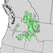 Країни поширення: Канада (Британська Колумбія); США (Айдахо, Монтана, Орегон, Вашингтон). Модрина західна росте в горах, на висоті від 600 м і 2100 м над рівнем моря, як правило, на сіро-коричневих, добре осушених підзолистих гірських ґрунтах, помірної кислоти. Клімат холодний, з прохолодним літом і вологою зимою, річна кількість опадів коливається від 450 мм до 875 мм, більша частина їх — це сніг. Може зустрічатися в чистих насадженнях; на початковій стадії після порушення (наприклад, пожежа) панівним може бути Pinus contorta var. latifolia, і Pinus ponderosa в певних областях; пізніше Pinus monticola, Pseudotsuga menziesii, Abies grandis і Abies lasiocarpa, нарешті Thuja plicata і Tsuga heterophylla займають їх місце.