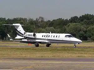 ![]() Learjet 45 авіакомпанії «Gama Aviation» у Фарнборо, Англія, липень 2006 року. | |