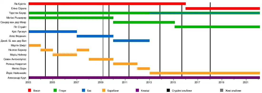 - Лів Крістін — вокал (2003—2016)