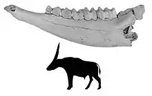 Нижня щелепа Leptobos etruscus і реконструкція силуету