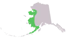 Країна проживання: США (Аляска, Алеутські о-ви). Він займає висоти від рівня моря до приблизно 660 м. Зазвичай займає відкриті тундри.