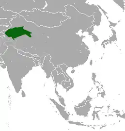 Країна проживання: Китай (Сіньцзян). Переважним місцем проживання є ліси тополі, тамариксу і чагарникові зарості вздовж річок.
