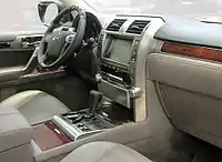 Lexus GX у стандартній комплектації досить добре обладнаний і включає в себе: салон, обшитий замінником шкіри з вставками з полірованого дерева, 10-позиційні передні крісла, двозонний клімат-контроль, камеру заднього виду, електропривідний люк, регульовану по нахилу і вильоту кермову колонку. Інформаційно-розважальне обладнання в базовій комплектації має у своєму складі: 8-дюймовий дисплей аудіосистеми з підтримкою AM / FM / CD, Bluetooth, подвійний USB-порт, нову систему Siri Eyes Free для iPhone. Системи безпеки представлені: 10 подушками безпеки, активними підголовниками, а також системою безпеки від Лексус з 24/7 сервісами.