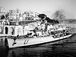 Ескадрений міноносець «Лібеччо» у 1936—1938 роках брав участь в громадянській війні в Іспанії][1], а в 1939 році — в окупації Албанії.