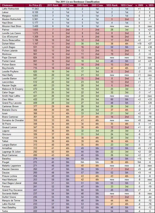 - Château Lafite Rothschild у класифікації 2011 року перемістилось на 1 місце у рейтингу потіснивши переможця 2009 року Château Latour;