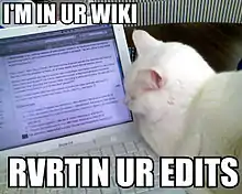 - Annalee Newitz (27 kwietnia 2007). I'M IN YR X Y-ING YOUR Z -- A Grammar of Lolcats. Table of Malcontents, a Wired blog. Процитовано 29 kwietnia 2007. «These images... usually include a cute cat saying something related to buckets, cheeseburgers, or whatever else with strangely-conjugated verbs.»