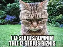 На фотографіях найчастіше зображується кіт з великим написом безсерифовими літерами (наприклад такі шрифти як Impact або Arial Black)[5]. Фотографії також часом графічно редагуються задля отримання кращого ефекту. Написи укладаються у словесну бульбашку, яка представляє висловлення кота, чи просто є підписом до фотографії. Текст записується неграмотною англійською мовою, за використання неконвенційних граматичних форм і ортографії. Такий вид висловлення порівнюється до піджина, чи мовного стилю, що використовується дорослими при розмові з дітьми[6][5][7].