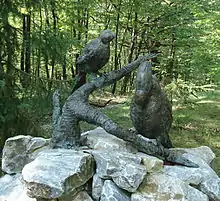 | Серед гусей, фламінго, трьох різнокольорових видів голубів, плямистих і зелених папуг є з загнутими дзьобами і синіми головами руді ворони, які насилу літають і мають від голландців прізвисько «індійський ворон». | ||