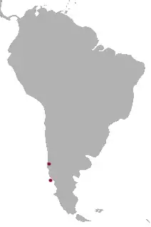 Вид — ендемік Чилі. Має роз'єднаний розподіл з двома субпопуляціями: вид зустрічається на більшій частині острова Чілое (близько 200 км на 62 км), особливо там, де залишається ліс, за винятком найбільш густонаселених районів у східній і північно-східній частинах; на материку Чилі невелика субпопуляція спостерігається з 1975 року в Національному парку Науельбута (ісп. Nahuelbuta, 68,3 км²) та в природних лісах навколо парку. Перші зразки виду зібрав Чарльз Дарвін в 1834 році, на південно-східному краю острова Чілое[2].