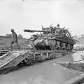 Британська модифікація САУ M10 «Вулверін» «Ахіллес», озброєна гарматою QF 17 pounder, долає річку Савіо по мостоукладальнику Churchill ARK. Італійська кампанія. 24 жовтня 1944