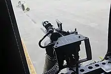Використовуваний боєприпас — 7,62 NATO. Живлення патронами може здійснюватися із стандартної розсипної стрічки або за допомогою механізму ланкової подачі патронів. У першому випадку на кулемет ставиться спеціальний механізм «delinker», який здійснює витяг патронів із стрічки перед подачею в кулемет. Стрічка подається до кулемета через спеціальний металевий гнучкий рукав від коробів, що мають типову ємність від 1500 (повна вага 58 кг) до 4500 (повна вага 134 кг) патронів. На важких вертольотах (CH-53, CH-47) ємність патронних коробів для живлення одного кулемета може досягати 10 000 і навіть більш патронів .