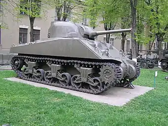 ![]() M4A2 Sherman на майданчику Національного університету оборони України в Києві | |