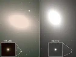 ![]() Знімок двох ультракомпактних галактик — ліворуч M59-UCD3, праворуч M85-HCC1 | |