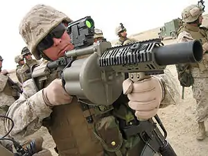 ![]() Морський піхотинець США перевіряє новий MGL-MK1 (Ірак) | |