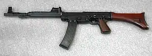 Вже в 1918 році німецька армія почала вивчати можливість використання проміжного патрона і гвинтівки. [1] Однак поєднання військової ортодоксальності, обмежених коштів та обмежень Версальського договору на розвиток озброєнь, змусило Німеччину прийняти Mauser Karabiner 98K 21 червня 1935 року. З 1939 року німецька армія збирала бойові звіти, які аналізували для визначення бойових умов та тактичних тенденцій з метою розробки нових тактик та вимог до спорядження. [2] Одною з причин пошуку нового типу зброї було те, що існуючий гвинтівковий патрон 7,92x57 мм був потужнішим і дальнішим, ніж було потрібно. Оскільки більшість боїв відбувалися на відстані менше ніж 400 м, а отже може бути використаний менш потужний патрон, що означало б, що солдат міг носити більше боєприпасів, зброя могла бути коротшою, легшою і з меншою віддачею та автоматичною. Пістолети-кулемети існували ще з часів Першої світової війни, але вони застосовували боєприпаси пістолетного калібру, і їм бракувало як дальності, так і точності, яку шукала німецька армія. Потрібен був новий проміжний патрон, і 7,92 × 33 мм Kurz був розроблений у відповідь на цю вимогу. Специфікація передбачала нову зброю, яка була більшою за пістолет-кулемет, точнішою, дальнішою та маневренішою, ніж повнорозмірна гвинтівка.