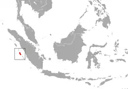 Цей вид є ендеміком Сіберут, одного з островів біля західного узбережжя острова Суматра, Індонезія. Загальна чисельність населення, за оцінками, між 17 000 і 30 000 (2006). Знаходиться на первинних і порушених територіях, більш надаючи перевагу прибережному болотному лісу. Потенційні хижаки: орли і великі змії.
