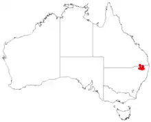 Країни поширення: Австралія (Новий Південний Уельс). Рослини розкидані в сухому склерофітному лісі на піщаних ґрунтах поверх граніту.