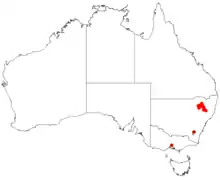 Країни поширення: Австралія (Новий Південний Уельс). Цей вид розсіюється в сухому склерофітному лісі на кам'янистих ґрунтах.