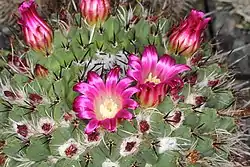 | Центральні колючки | 3-4, іноді одна, досить різноманітні за кількістю і кольором, міцні, викривлені, у віці переплетені, багрянистого кольору з темно-коричневими кінцями, одна або більше розміщені по центру, до 70 мм завдовжки, інші 20-70 мм завдовжки. |