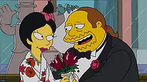 Несучи подарунок для пари, перед магазином Гомер зустрічає батька Куміко. Гомер розповідає йому про те, що хлопець його доньки ― жирний задрот. Це спонукає пана Накомуро зупинити стосунки і забрати Куміко.