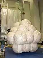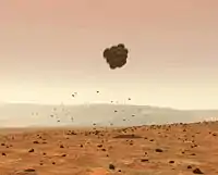 Парашут і ракетні двигуни посадкового модуля перед посадкою