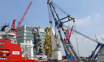Влітку 2016-го у данському Фредеріксгавні кран змонтував два житлові модулі вагою 1200 тонн на самопідіймальне судно Maersk Guardian. Споруджене у 1980-х роках як бурове, воно проходило переобладнання під житлове з метою подальшого використання на родовищах Північного моря.[43]