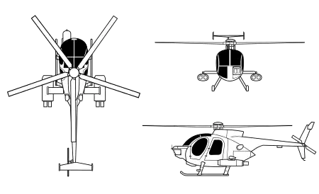 - OH-6A Cayuse, AH-6J Little Bird and Defender 500 specs.