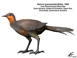 ? †Menura tyawanoidesЧас існування: ранній міоцен, 23-16 млн років тому | ||||||||||||||||
