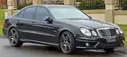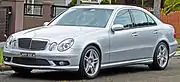 У жовтні 2002 року вийшов E 55 AMG розроблений на основі Mercedes-Benz E-Класу (W211). Автомобіль пропонується в кузові седан і універсал. Двигун транспортного засобу розроблений на основі бензинового M113 V8 від E 500, який був переглянутий спеціалістами AMG з додаванням компресора. Він забезпечує потужність 476 к.с. (350 кВт) і максимальний крутний момент 700 Нм. Прискорення від 0 до 100 км/год авто займає 4,7 секунди. Автомобіль відрізняється від інших моделей наявністю пневматичної підвіски AIRMATIC DC, що входить в стандартну комплектацію, а гальма є спортивними. У порівнянні з попередньою топ-моделлю, E 500, передня вісь має вісім поршнів гальмівного циліндра з кожного боку. Зовні автомобіль можна відрізнити за стилістикою AMG, що полягає в іншому переднійьому бампері з сіткою, оригінальних колесах AMG, бічних позначках "V8 Kompressor" і чотирма трубами вихлопної системи з заднім дифузором.