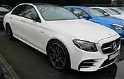 Навесні 2016 року компанія представила Mercedes-Benz E43 AMG. Автомобіль оснащений допрацьованим трилітровим (2996 см3) двигуном V6 з двома турбокомпресорами, який розвиває 401 к.с. потужності при 6100 об/хв і 520 Нм крутного моменту, доступних вже при 2500 оборотах на хвилину. Силовий агрегат працює в парі з дев'ятиступеневою автоматичною коробкою передач і системою постійного повного приводу 4Matic, яка розподіляє тягу в співвідношенні 31:69 на користь задньої осі. Автомобіль також оснащений адаптивною пневмопідвіскою AIR BODY CONTROL, системою вибору режимів руху AMG Dynamic Select з попередньо встановленими Eco, Comfort, Sport, Sport Plus і Individual, посиленими гальмами (з дисками діаметром 360 мм) і перенастроєним під спортивну їзду підсилювачем керма. Маса автомобіля без водія і заповненим на 90% паливним баком становить 1765 кг. Розгін з 0 до 100 км/год складає 4,6 секунди. Максимальна швидкість обмежена електронікою на позначці в 250 км/год.