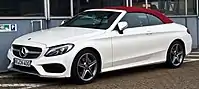 На спеціальному заході напередодні відкриття Женевського автосалону компанія Mercedes-Benz представила версію Mercedes-Benz W205 в кузові кабріолет (внутрішній індекс A205). Модель отримала м'який дах, який може відкриватися і закриватися за 20 секунд на швидкості до 50 кілометрів на годину. Складений верх розташовується в спеціальному відсіку багажника і зменшує його обсяг з 360 до 285 літрів. Кабріолет в базовій комплектації оснащується дахом чорного кольору. В якості опції м'який верх пропонується з багатошарового матеріалу, який покращує шумоізоляцію в порівнянні зі стандартною версією, в темно-коричневому, темно-синьому, темно-червоному і чорному кольорах. В цілому новинка має 13 варіантів обшивки салону, три варіанти оформлення внутрішньої поверхні даху, а також можливість обробки інтер'єру карбоном, деревом, алюмінієм або скловолокном. Крім того, задні крісла кабріолета можуть складатися в пропорції 50/50.