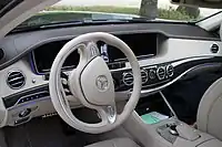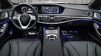 Інтер'єр рестайлінгового S-класу також зазнав деяких змін. Два 12,3-дюймових дисплея на передній панелі помістили під загальне скло. Центральний оснащується функцією «split view», завдяки якій водієві і пасажирові транслюються різні картинки одночасно. Проте, екрани не стали сенсорними. Оновився також і дизайн рульового колеса. У салоні з'явилися нові варіанти дерев'яної обробки і оновилася атмосферна світлодіодне підсвічування. До управління системою мультимедіа COMAND додані невеликі тачпади на спицях керма.