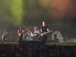 ![]() Metallica на О2 Арені, Лондон в 2008 році. Зліва направо: Кірк Геммет, Ларс Ульріх, Джеймс Гетфілд і Роберт Трухільйо. | |