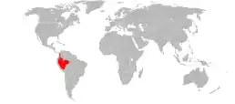 Цей вид живе в басейні Амазонки: Колумбія, Еквадор, Перу і Бразилія на захід від Ріо-Негро і р. Журуа. Вертикальний діапазон поширення до 2000 м н.р.м. Уподобання середовища проживання і екології цього виду невідомі. населяють оповиті туманом ліси, але, схоже, полюбляють пальмові ліси.