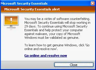 Microsoft Security Essentials постійно перевіряє валідність операційної системи під час і після встановлення. Якщо операційна система не буде розпізнана як ліцензійна, тоді антивірус буде повідомляти користувачу про це, а пізніше, після певного часу, перестане функціонувати.