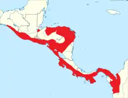 Вид поширений в Центральній Америці від Південної Мексики до Північно-Західної Колумбії.[2]